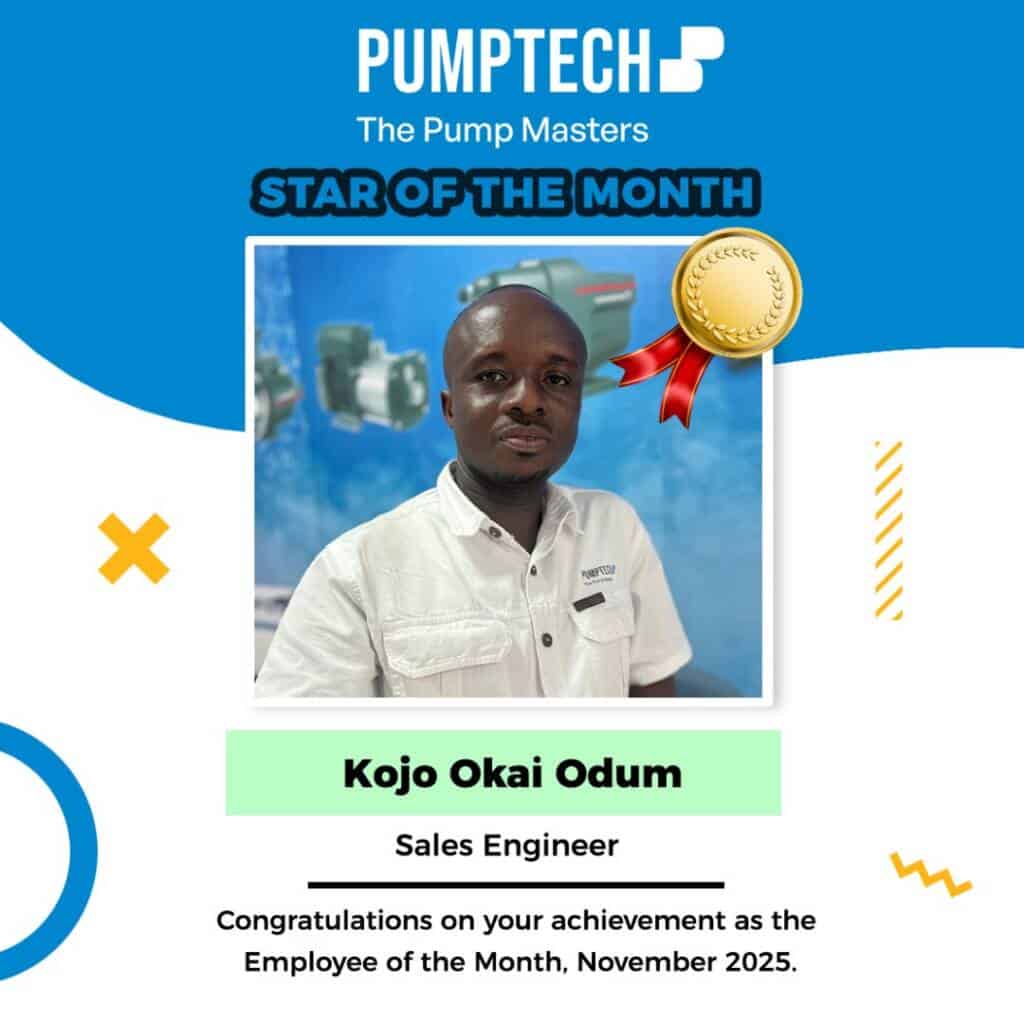 Pumptech, a leading name in fluid-handling solutions and a trusted authority in pump technology, has announced Kojo Okai Odum, Sales Engineer, as its Star of the Month for November 2025. This recognition highlights his exceptional performance, unwavering commitment, and remarkable contributions to both customers and the company.